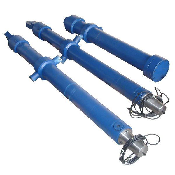 2.帶磁致伸縮直線位移傳感器和伺服閥塊的液壓缸:GC系列液壓缸所用磁致伸縮位移傳感器是一種無機械接觸并且沒有位置限制的傳感器,傳感器工作壓力可達35MPa。工作原理是磁場的相互影響,即通過接通磁場產(chǎn)生磁力應(yīng)變脈沖,該應(yīng)變脈沖通過波導(dǎo)管從測試點至傳感頭輸入至傳感器,該輸送時間將持續(xù)不變并且不受溫度影響,只與線圈位置成比例,那是確切實際的位置測量值,并隨傳感器轉(zhuǎn)變成模擬量輸出或模擬量輸出成數(shù)字輸出,由于探頭裝在缸頭上并插入空心活塞桿,所以活塞桿強度需受影響,一般活塞桿直徑需大于36mm。該位移傳感器有四種不同的形式輸出,產(chǎn)品全部選用美國進口產(chǎn)品。YGD系列液壓缸(雙伸出活塞桿油缸)不能安裝位移傳感器。